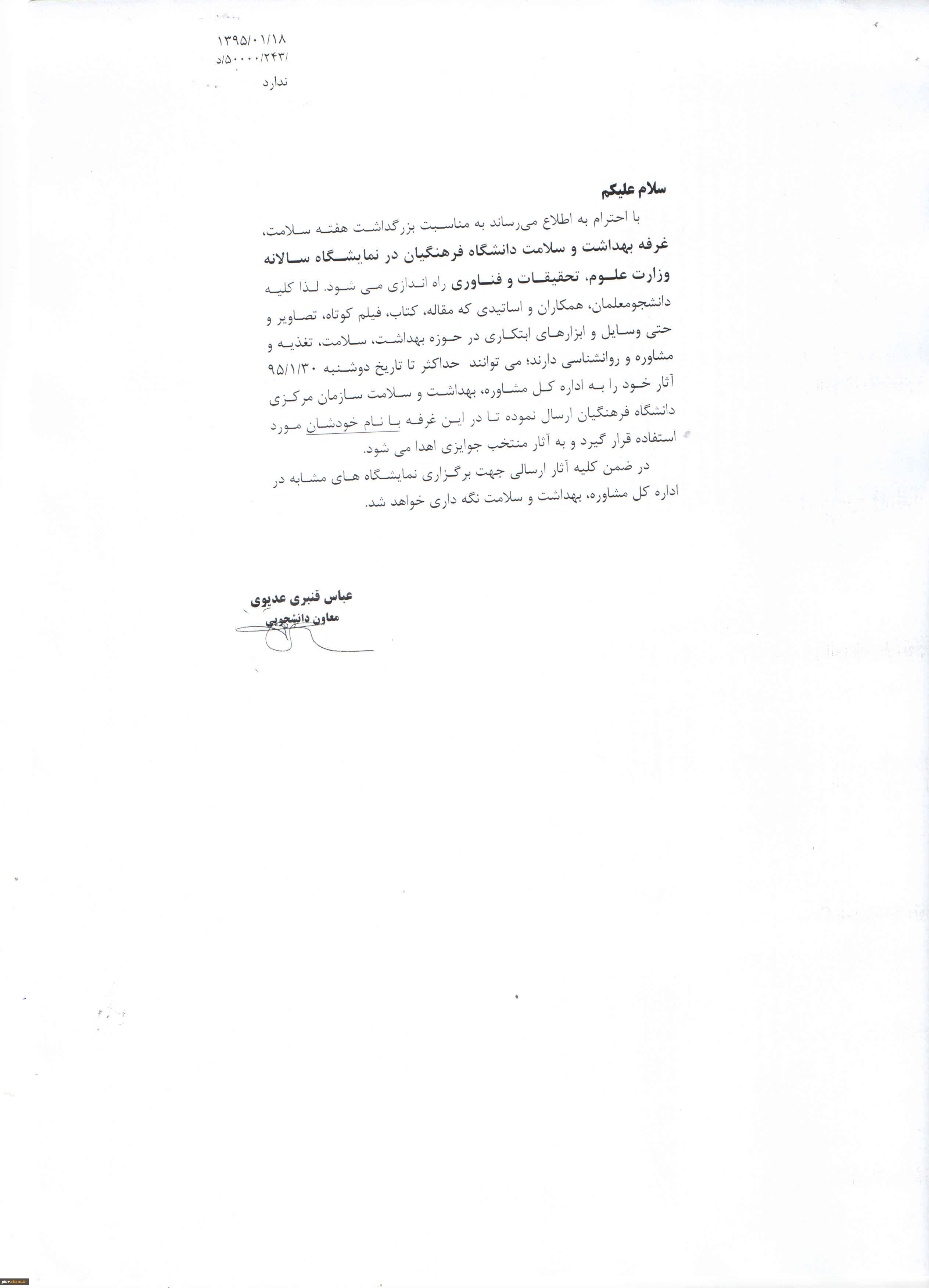 راه اندازی غرفه بهداشت و سلامت دانشگاه فرهنگیان در نمایشگاه سالانه وزرارت علوم ،تحقیقات و فنآوری