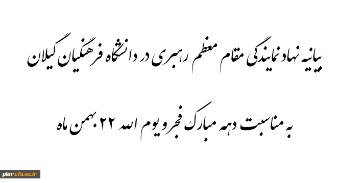 امتیاز دهید : بیانیه نهاد رهبری در دانشگاه به مناسبت دهه مبارک فجر و یوم الله 22 بهمن ماه سهشنبه 19 بهمن 1395 ساعت 15:50
