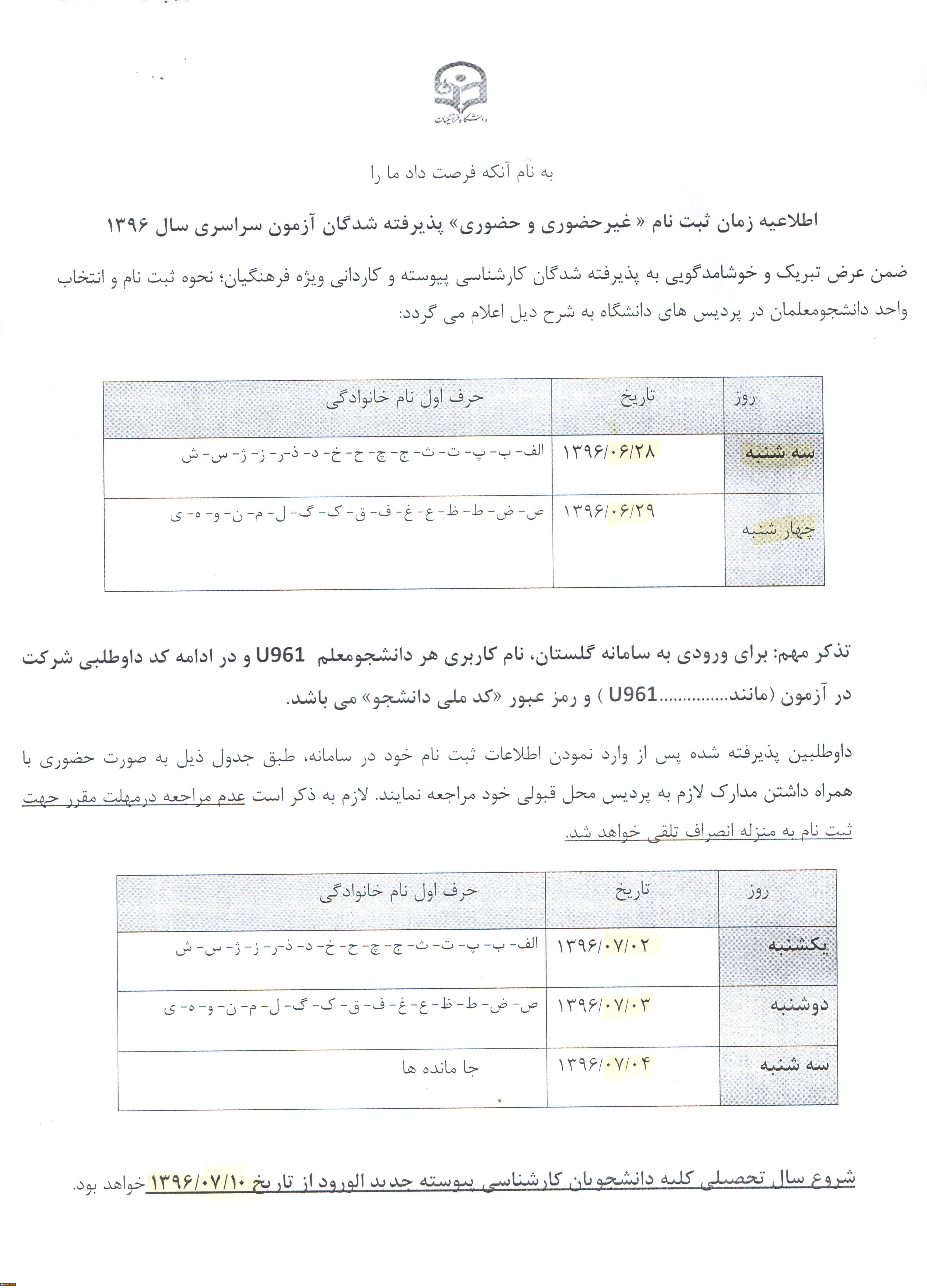 امتیاز دهید : قابل توجه ورودی های جدید "غیر حضوری و حضوری"پردیس امام علی (ع) یکشنبه 26 شهریور 1396 ساعت 8:43