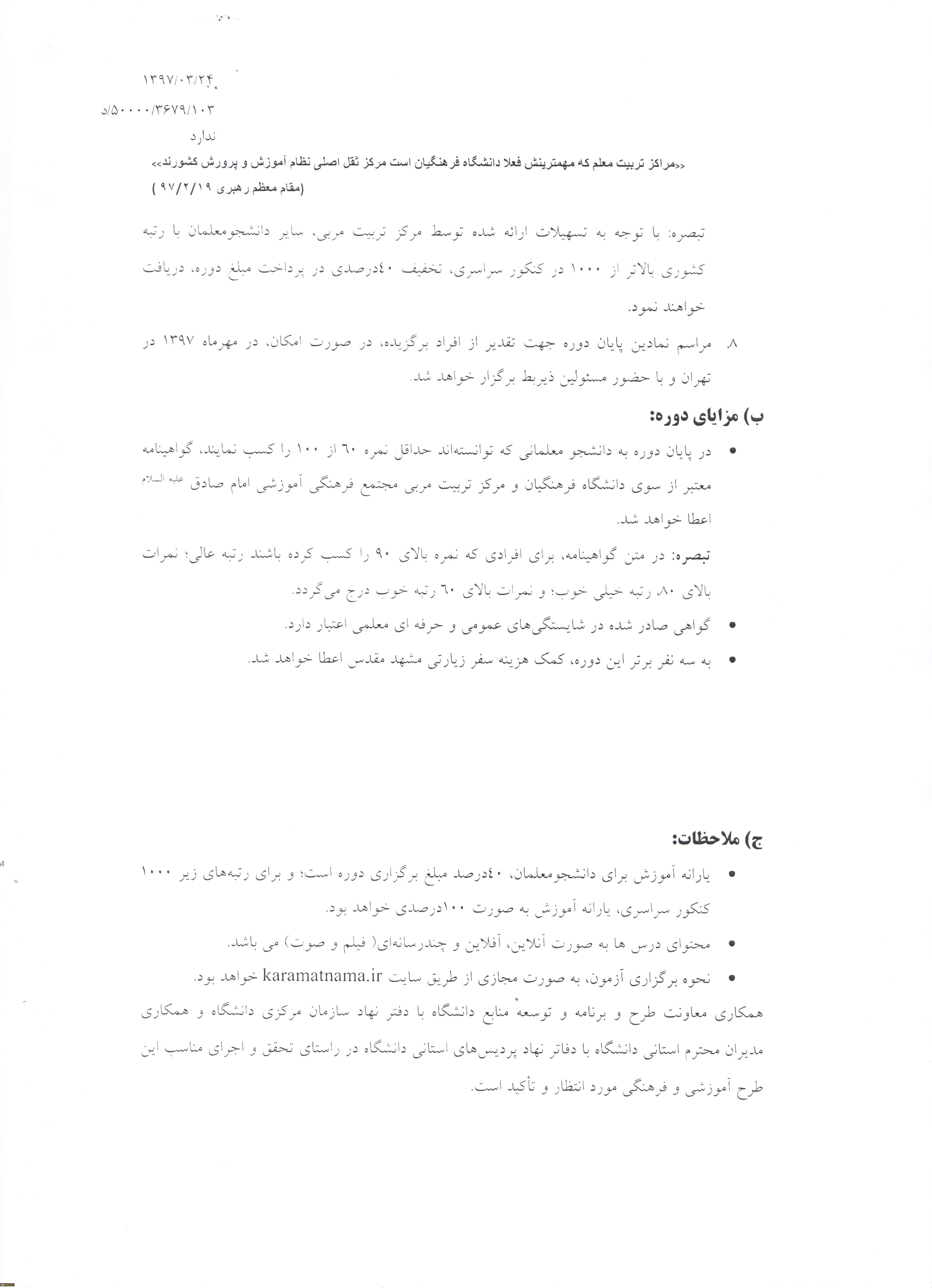 برگزاری طرح کرامت در دانشگاه فرهنگیان