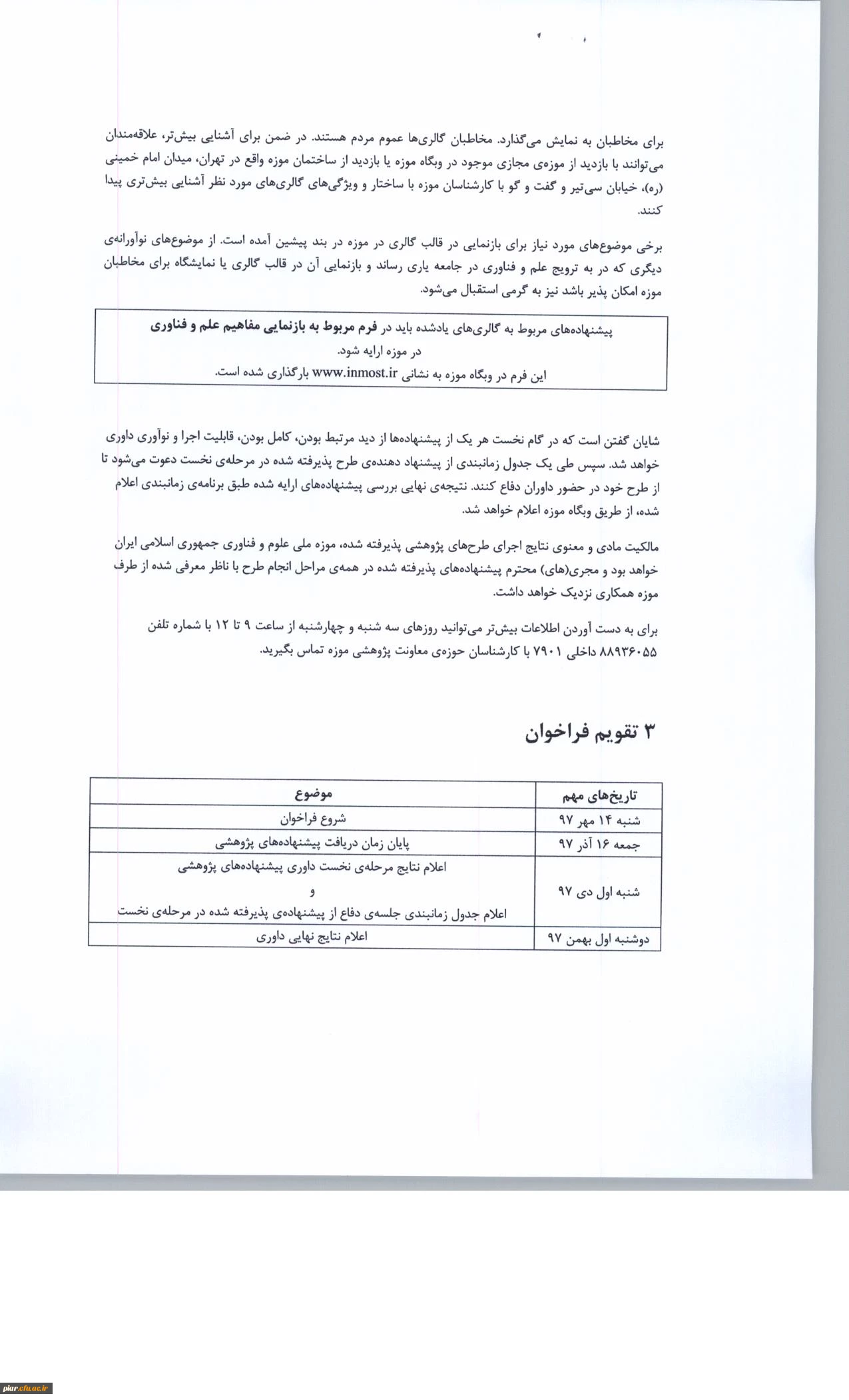 فراخوان پژوهشی 1397 موزه ملی علوم و فناوری 8