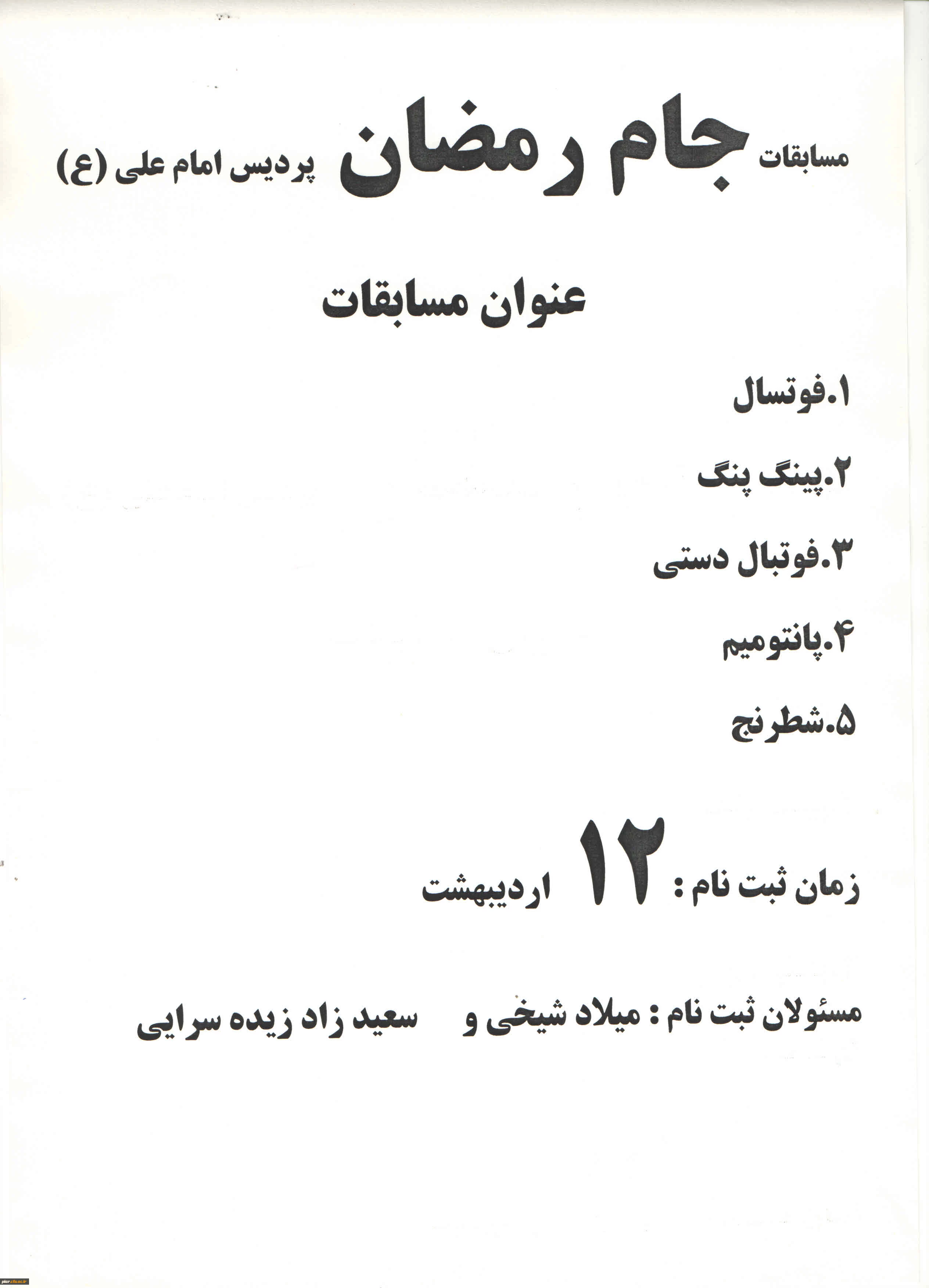 برگزاری مسابقات جام رمضان در پردیس امام علی (ع)