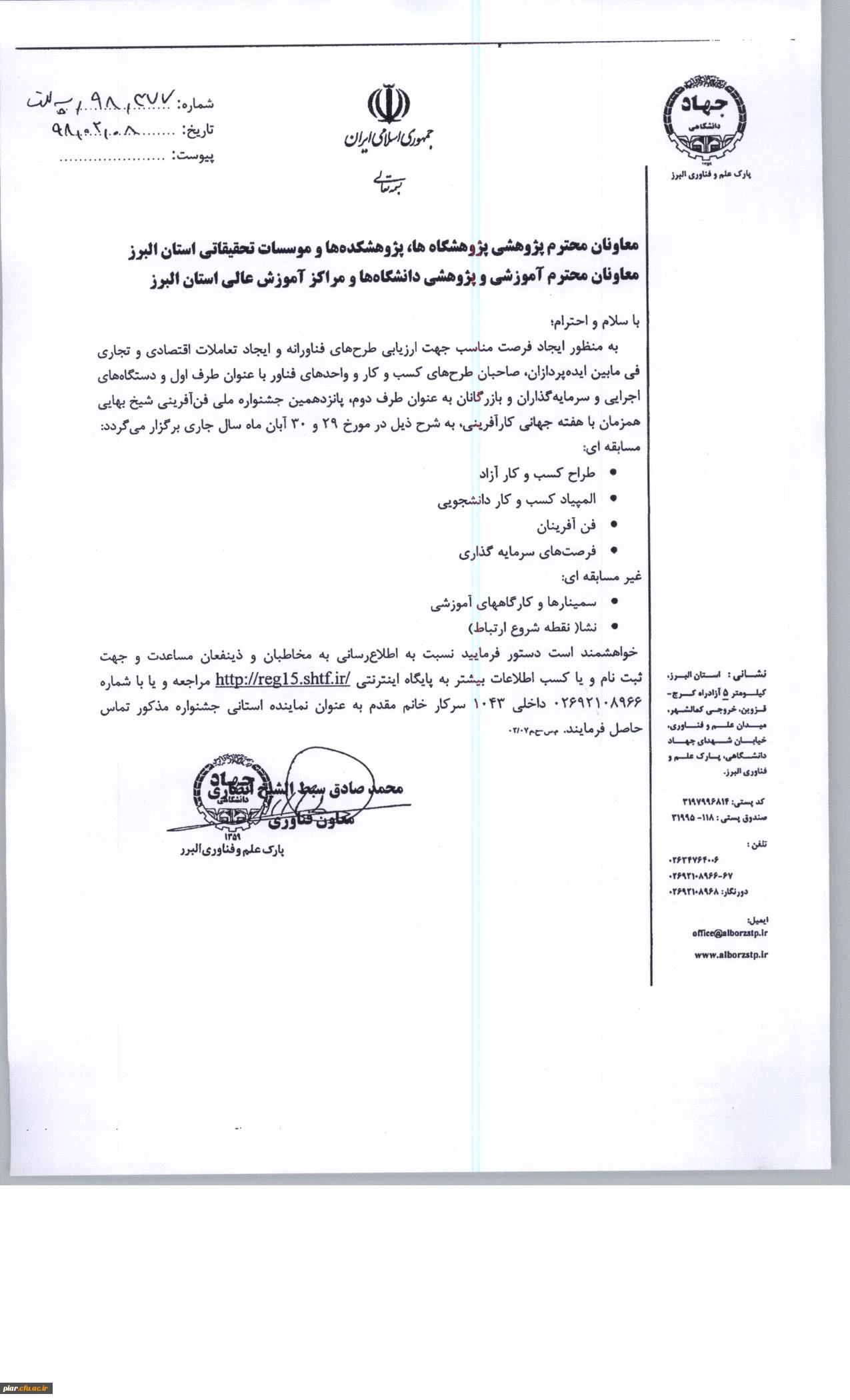فراخوان پانزدهمین جشنواره ملی فن آفرینی شیخ بهایی 2
