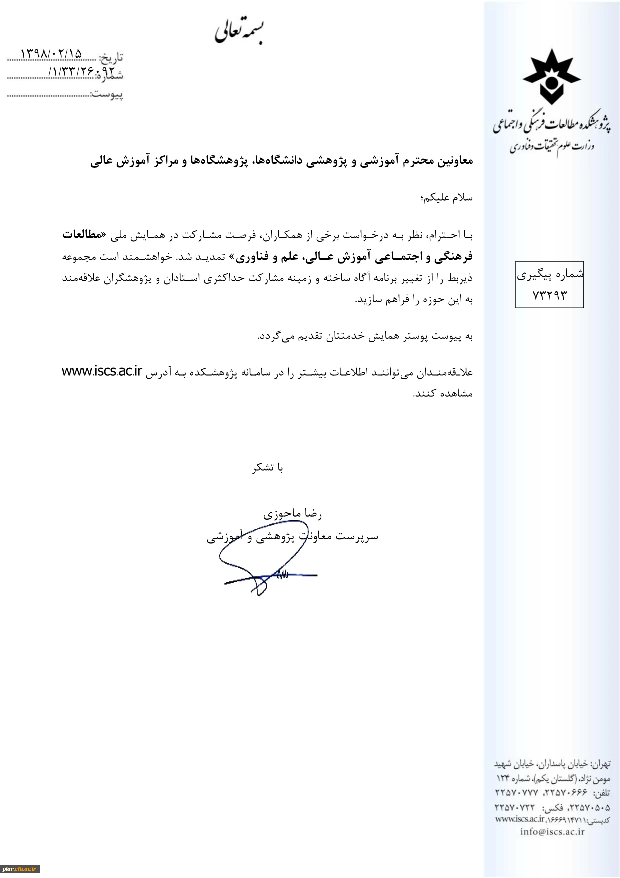همایش ملی " مطالعات فرهنگی و اجتماعی آموزش عالی ، علم و فناوری " تمدید شد. 2