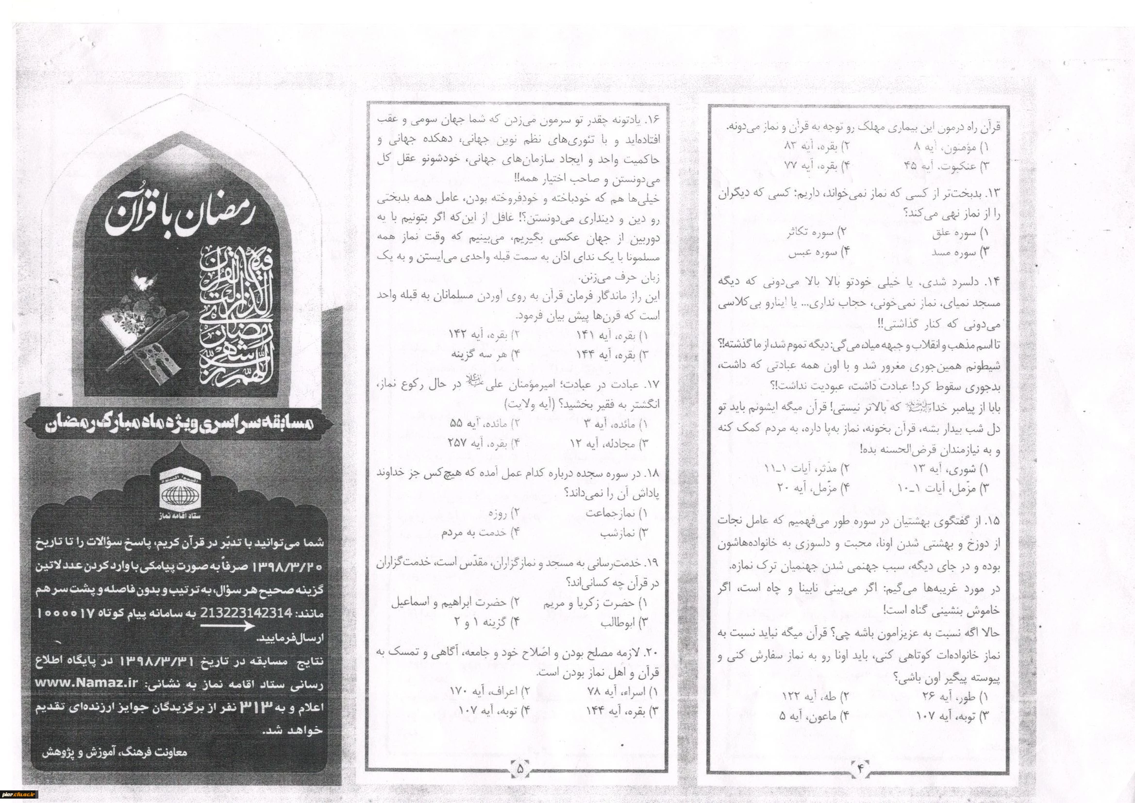 مسابقه سراسری پیامکی رمضان با قرآن