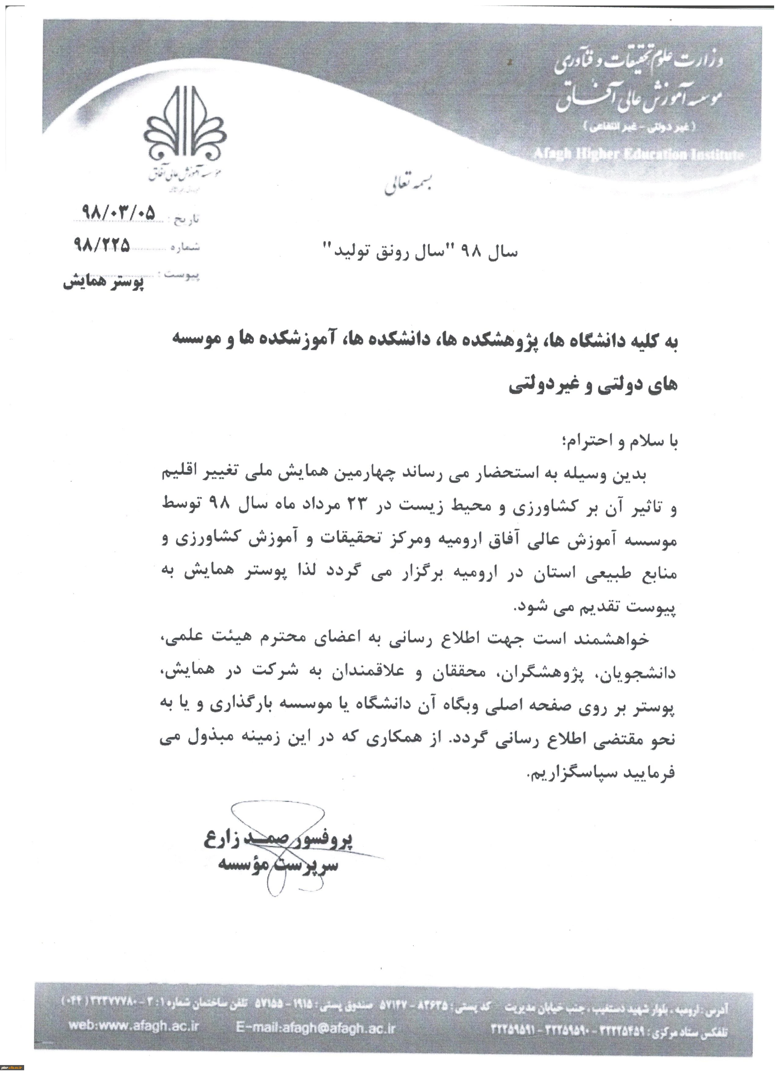 امتیاز دهید : چهارمین همایش ملی تغییر اقلیم و تاثیر آن برکشاورزی و محیط زیست 5 شنبه 1 تیر 1398 ساعت 11:01