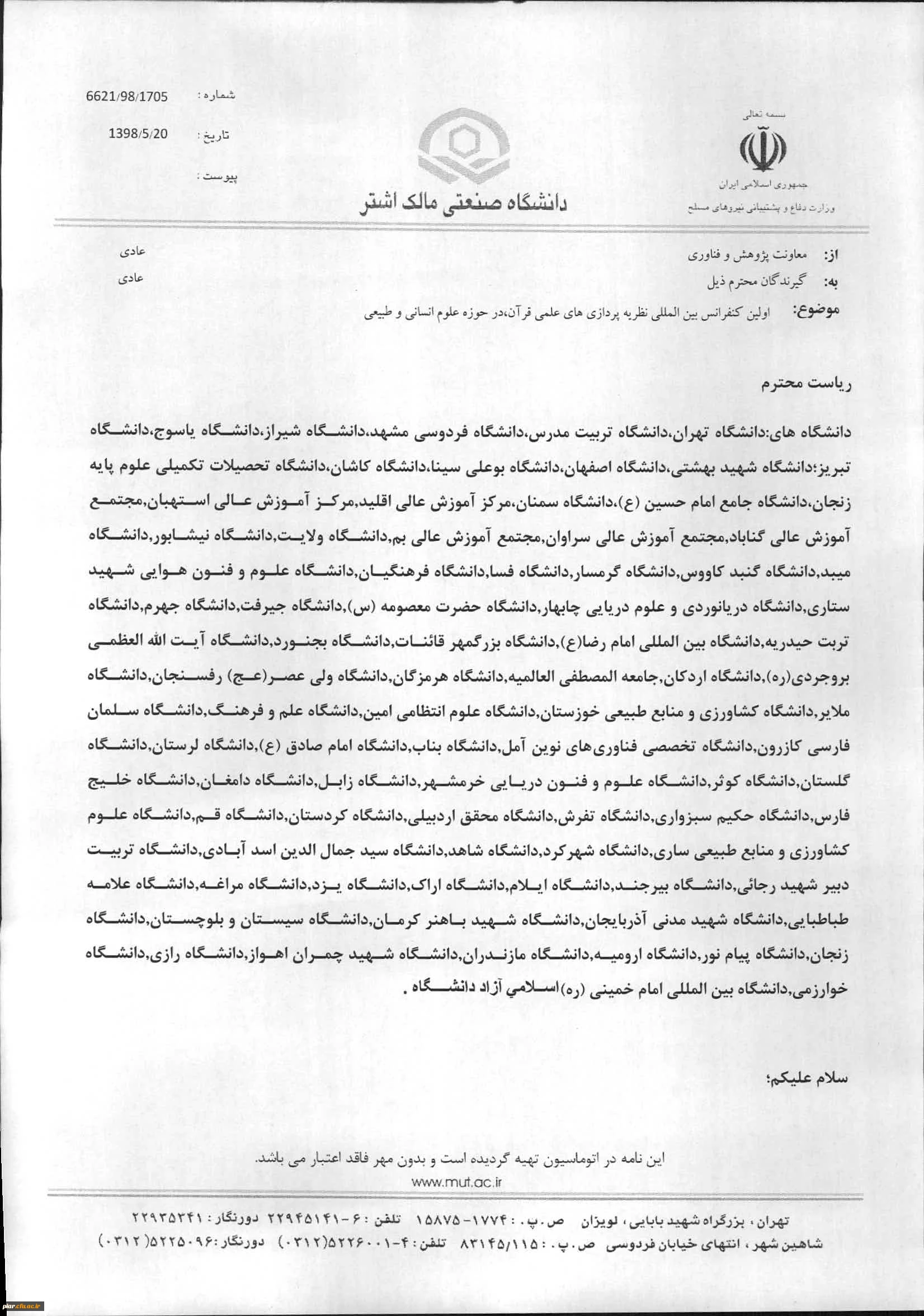 امتیاز دهید : اولین کنفرانس بین المللی نظریه پردازی های علمی قرآن در حوزه علوم انسانی و طبیعی 6 دوشنبه 28 مرداد 1398 ساعت 14:51