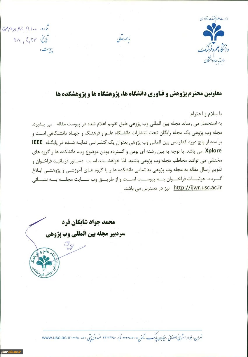 فراخوان ارسال مقاله به مجله بین المللی وب پژوهی 4