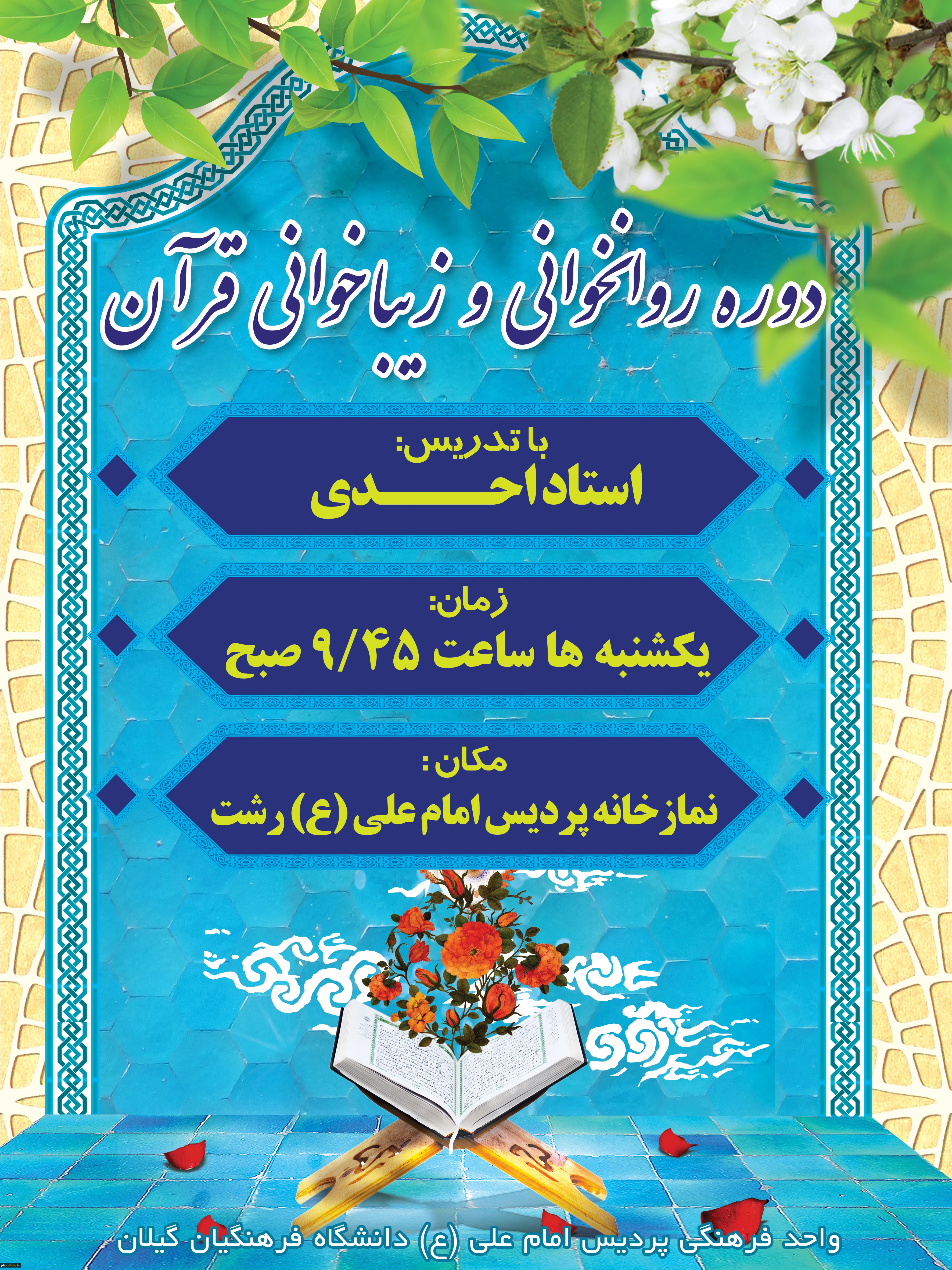 اطلاعیه دوره آموزشی روان خوانی و زیبا خوانی  قرآن کریم