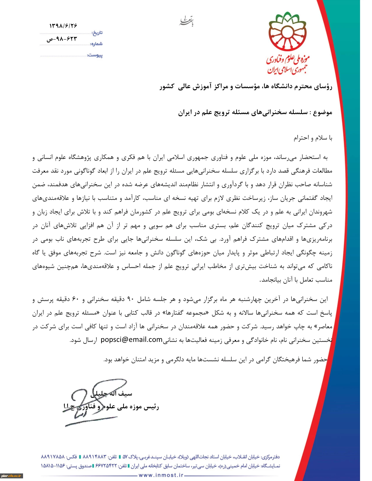 فراخوان سلسله سخنرانی های مسئله ترویج علم در ایران 3