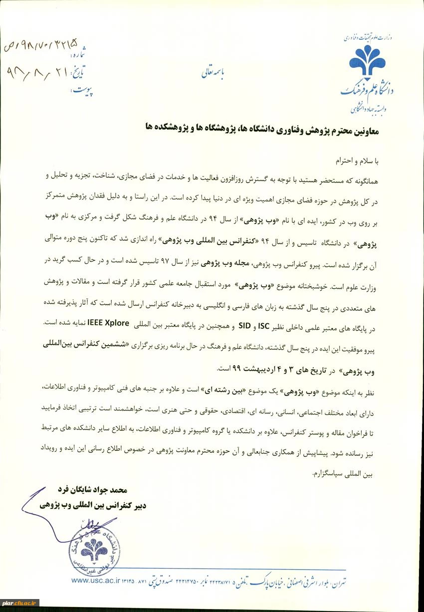 فراخوان مقاله ششمین کنفرانس بین المللی وب پژوهی3 - 4 اردیبهشت 99 ، دانشگاه علم و فرهنگ، تهران 2