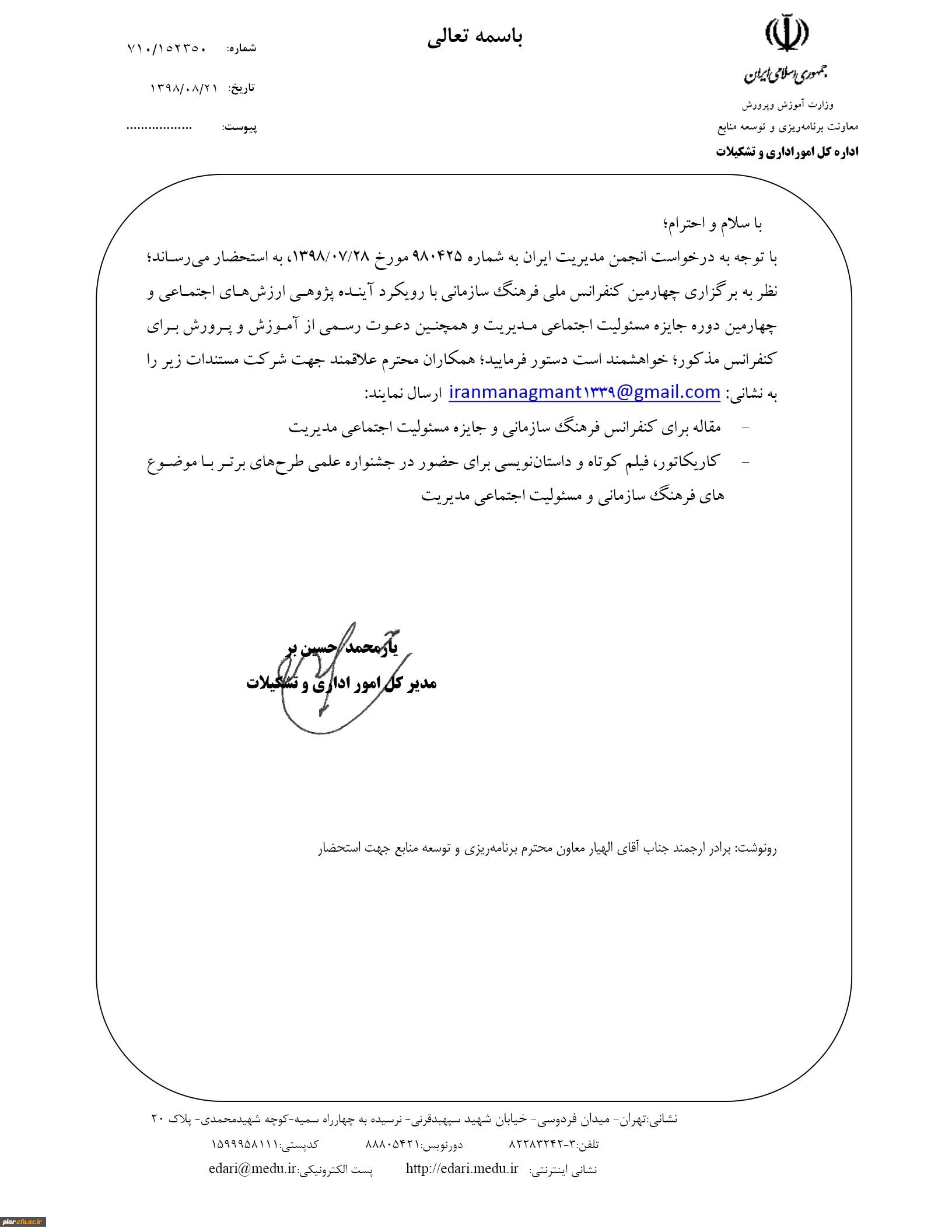 ارسال مقاله و فیلم کوتاه با موضوع فرهنگ سازمانی 3