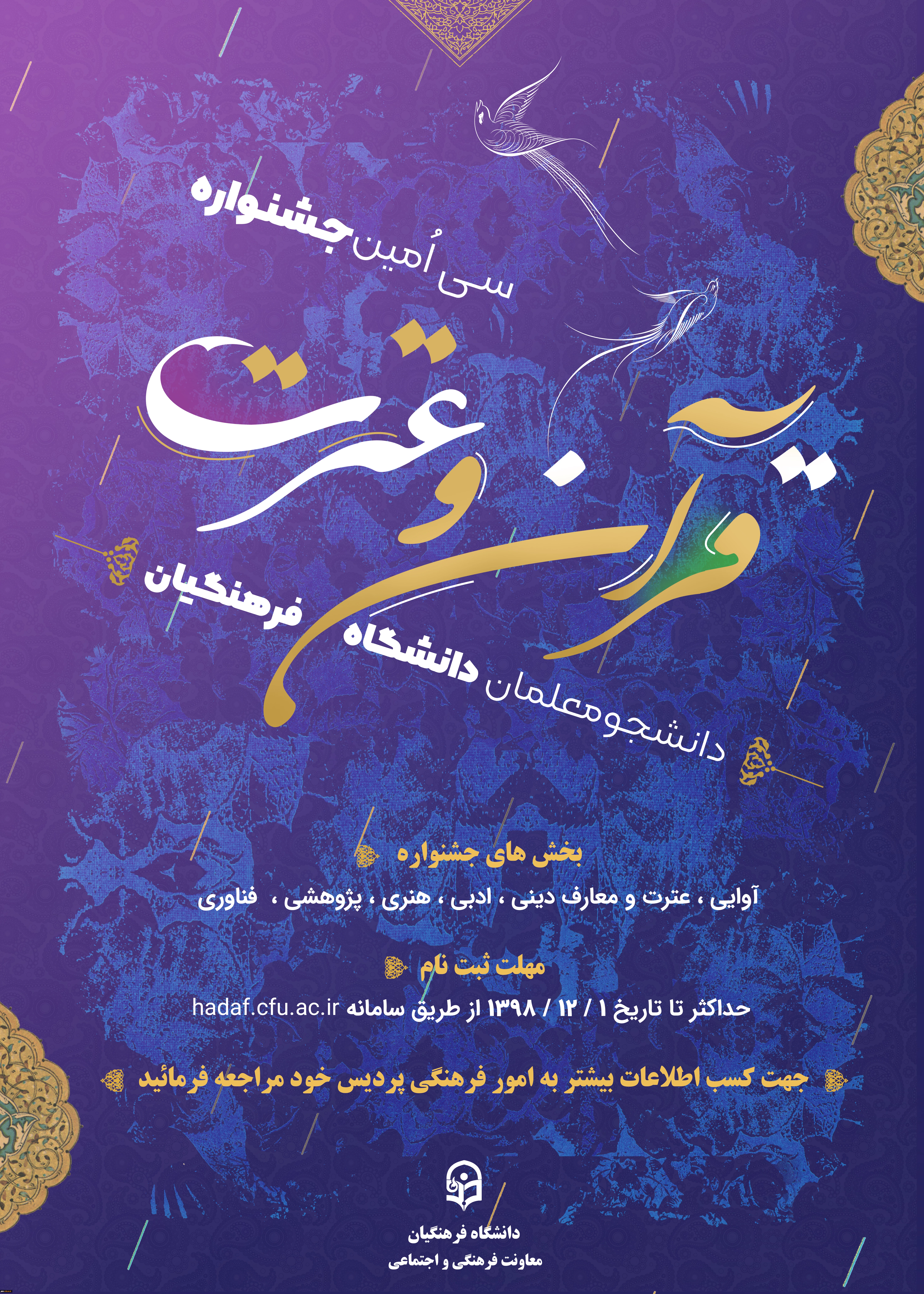 امتیاز دهید : سی امین جشنواره فرهنگی ، هنری و ادبی دانشجومعلمان دانشگاه فرهنگیان یکشنبه 8 دی 1398 ساعت 10:31