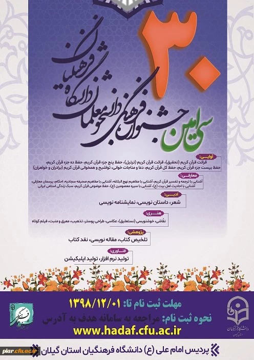 امتیاز دهید : اطلاعیه مهم سی امین جشنواره فرهنگی دانشجومعلمان دانشگاه فرهنگیان کشور شنبه 10 اسفند 1398 ساعت 12:15