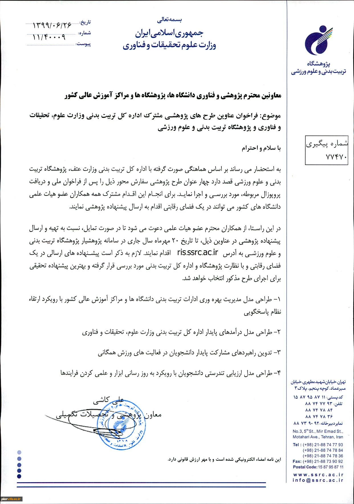 عناوین طرح های پژوهشی مشترک اداره کل تربیت بدنی وزارت علوم و تحقیقات وفناوری و پژوهشگاه تربیت بدنی و علوم ورزشی 2