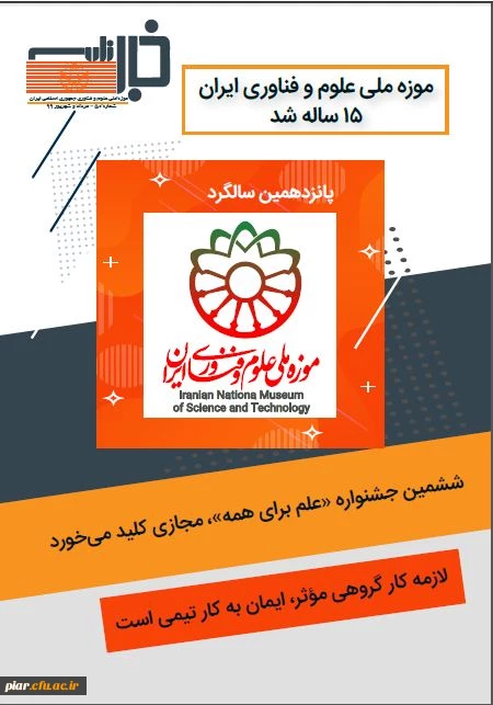 خبر نامه موزه ملی علوم و فناوری جمهوری اسلامی ایران 4