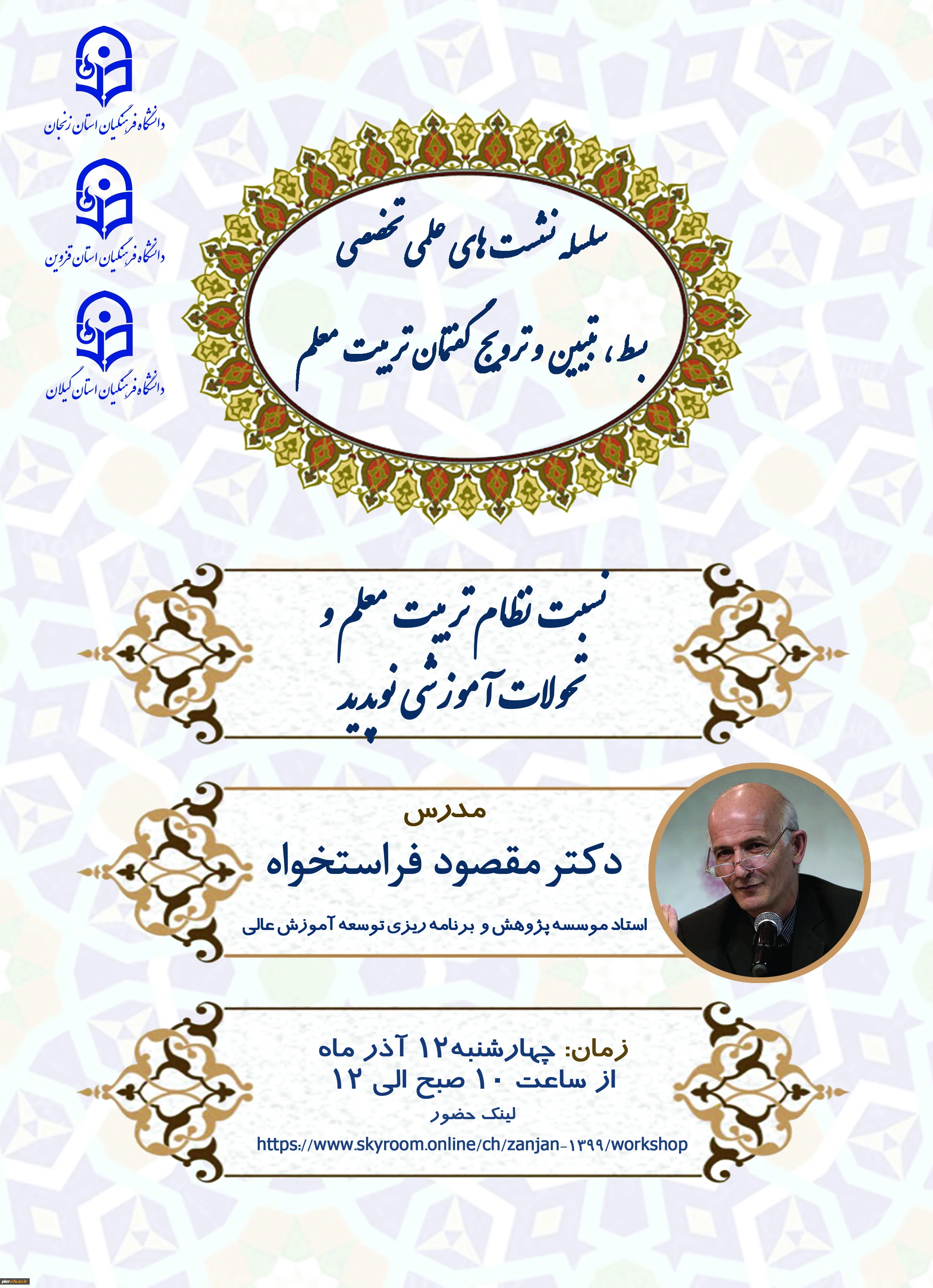امتیاز دهید : نشست تخصصی : نسبت نظام تربیت معلم و تحولات آموزشی نوپدید 2 چهارشنبه 5 آذر 1399 ساعت 22:39