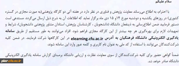 برگزاری کارگاه از طریق سامانه یادگیری دانشگاه (فعالیت های نو آوری و کار آفرینی دانشجویان) 2