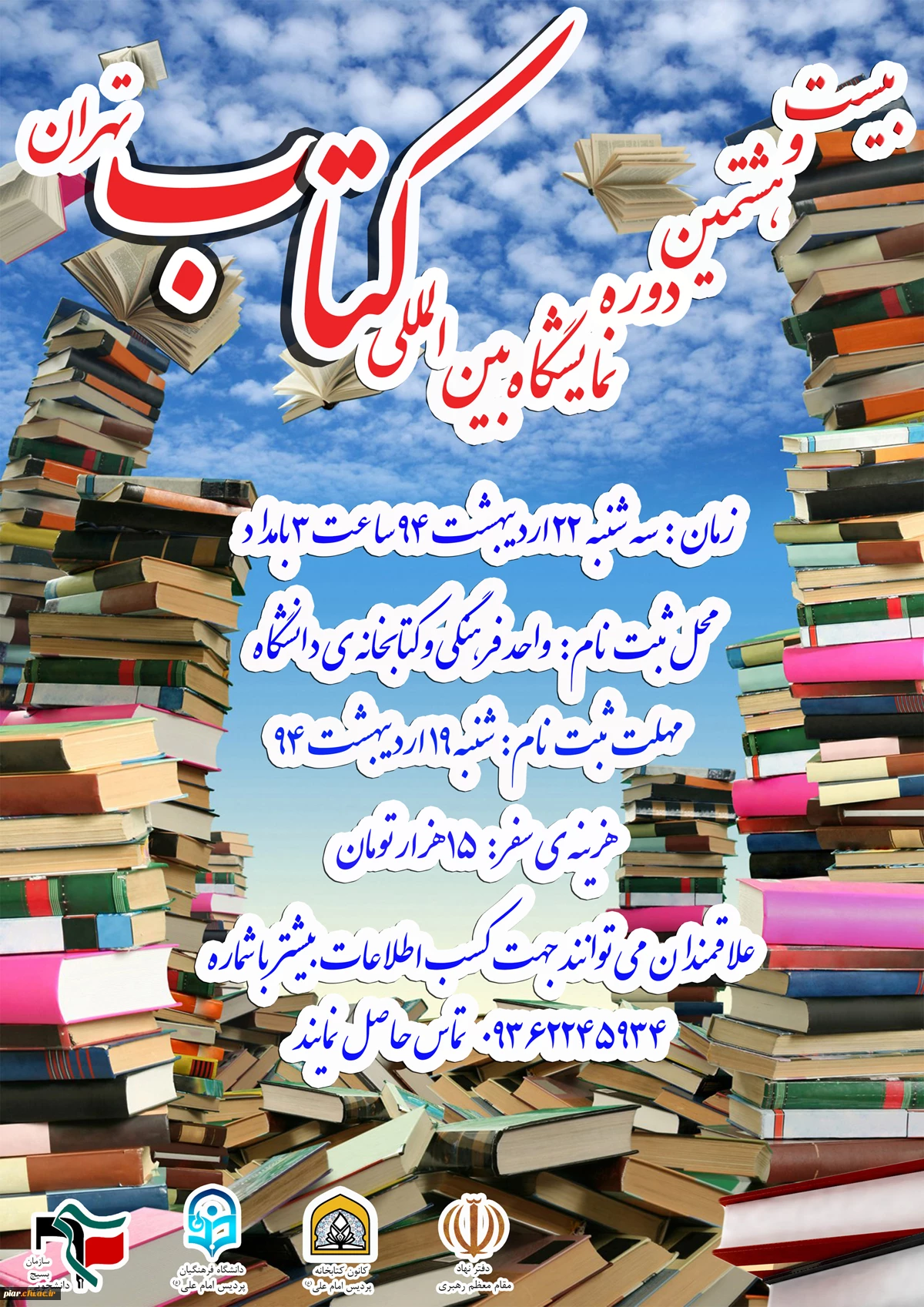 امتیاز دهید : اطلاعیه مهم: ثبت نام نمایشگاه بین المللی کتاب تهران چهارشنبه 9 اردیبهشت 1394 ساعت 16:15